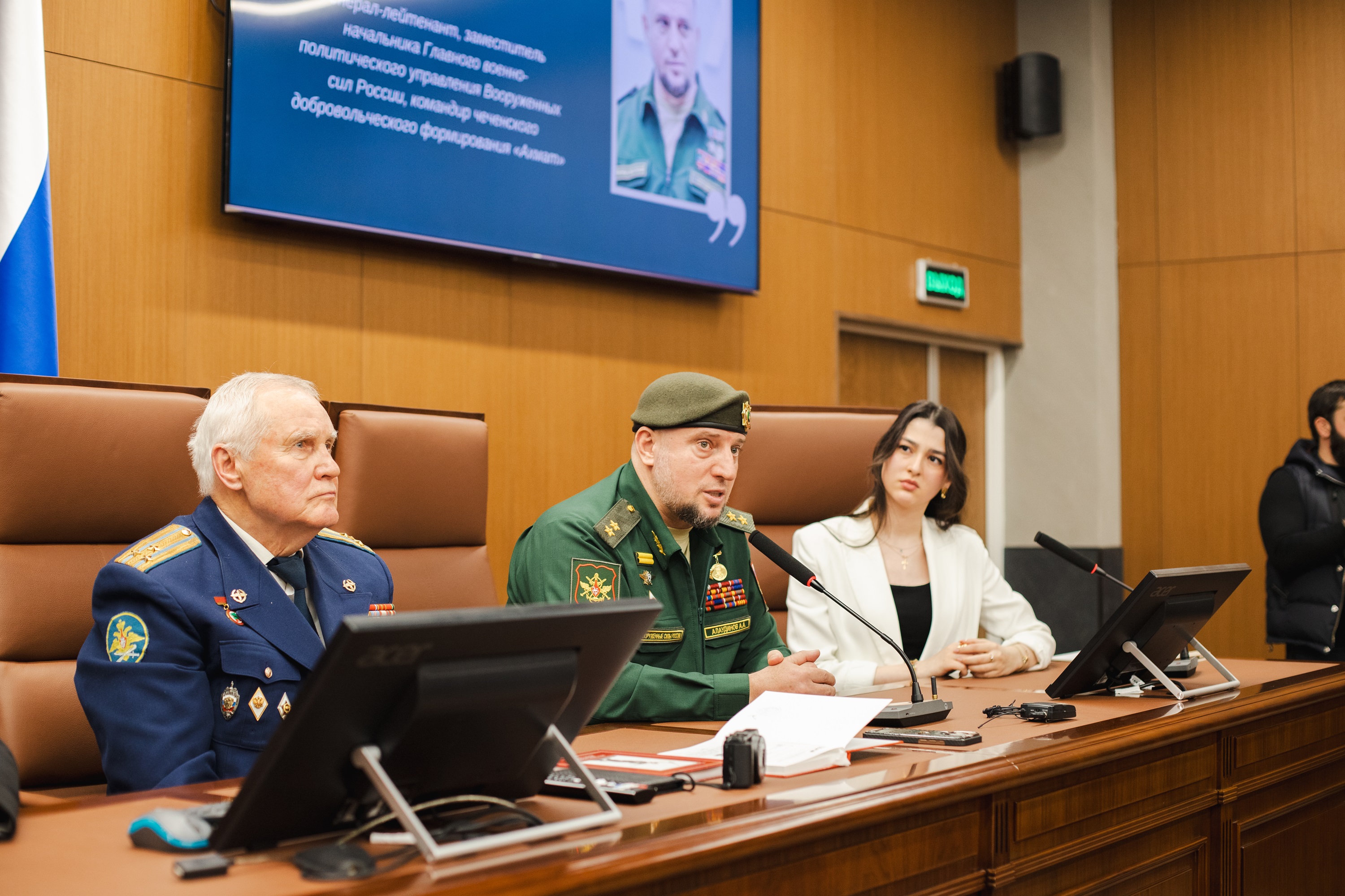 13 февраля 2025 г. на базе Юридического факультета МГУ состоялась встреча с Гером России, заместителем начальника Главного военно-политического управления ВС РФ, генерал-лейтенантом Апти Ароновичем Алаудиновым.