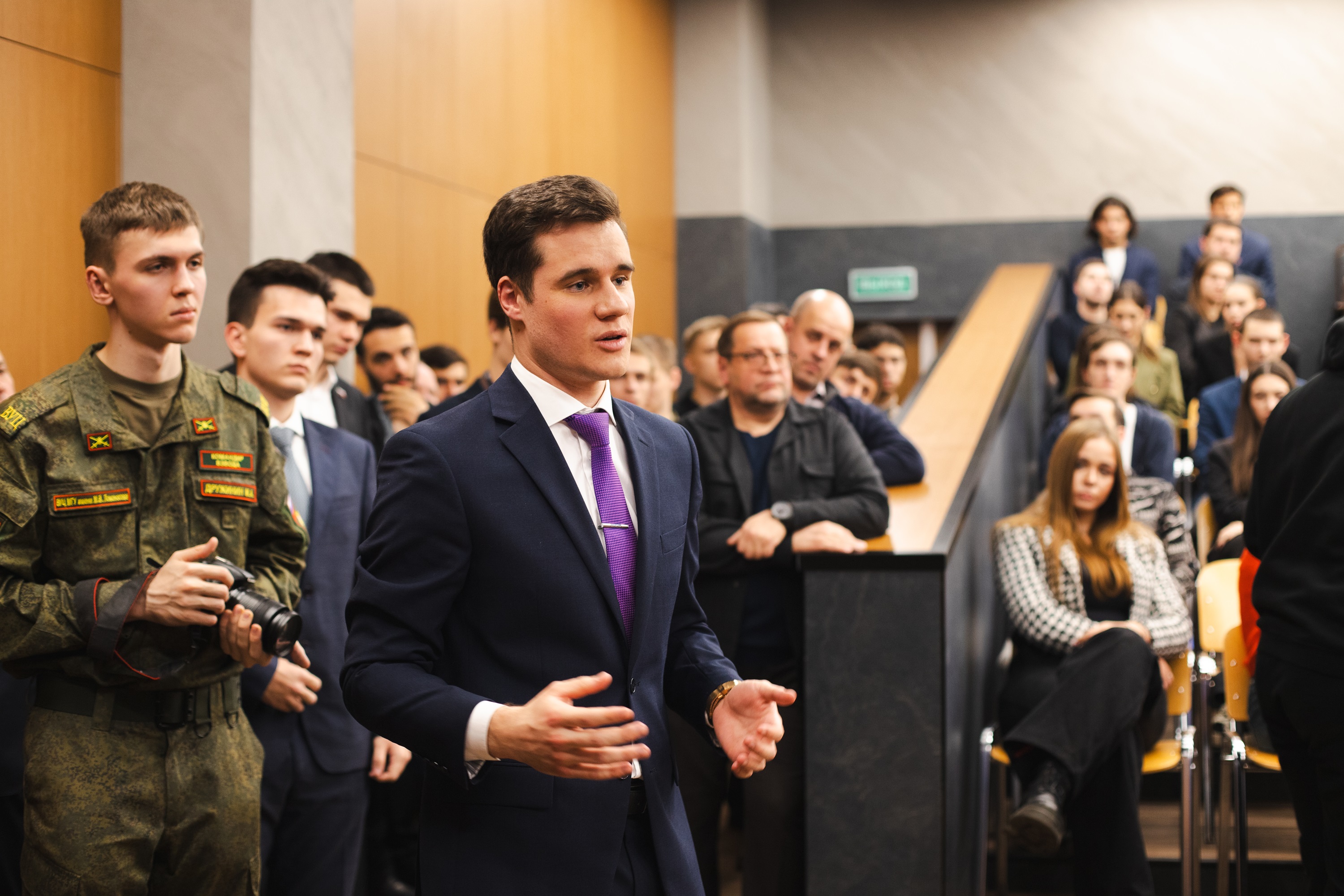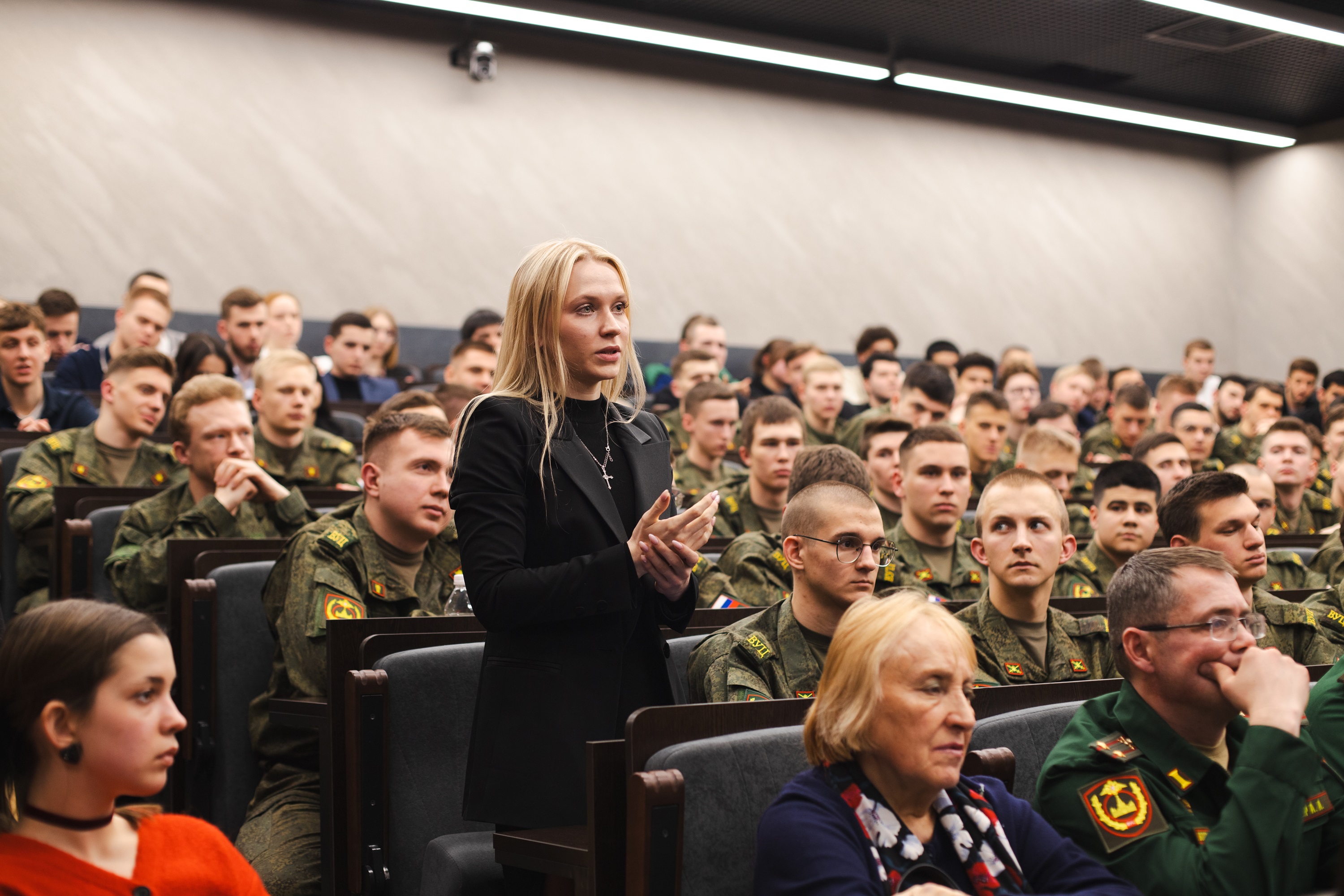 Затем гость ответил на многочисленные вопросы аудитории. Они касались семейных ценностей, важности волонтерских организаций для фронта, личных жизненных задач, значимости личного и профессионального развития молодежи на благо Родины, важности сохранения памяти о героях СВО и многих других тем.