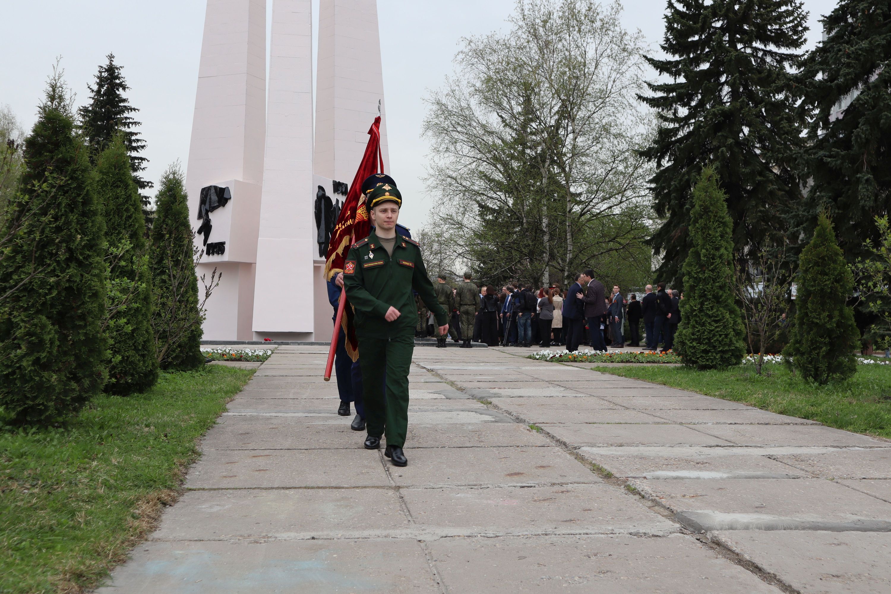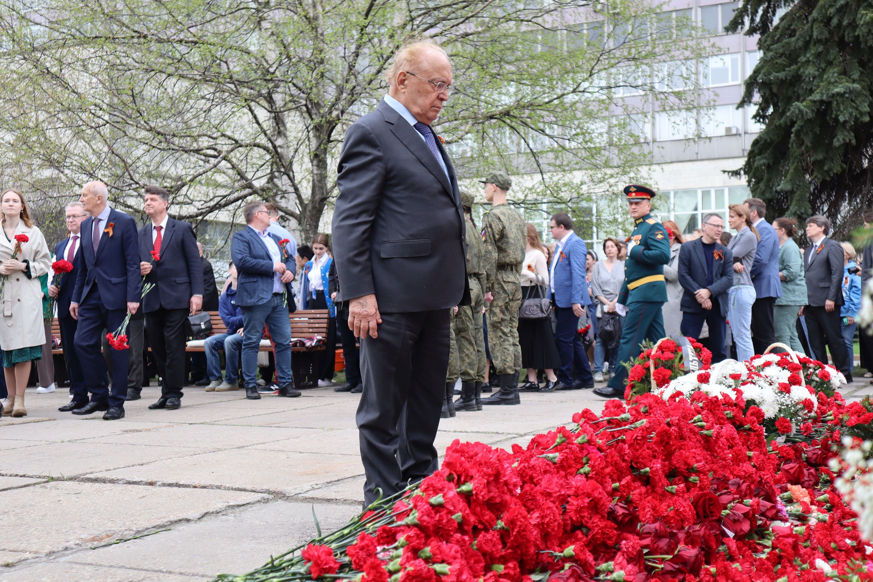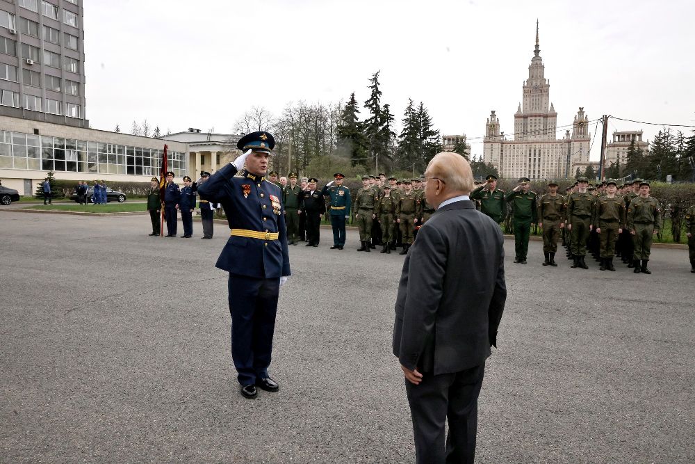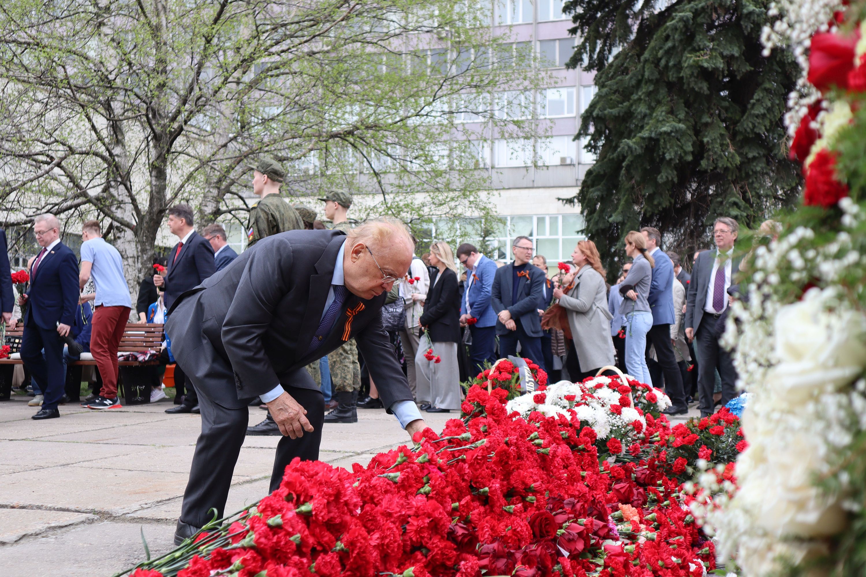 26 апреля 2024 г. с участием ректора Московского университета академика В.А.Садовничего прошел митинг у памятника студентам и сотрудникам МГУ, павшим в боях за Родину в Великой Отечественной войне 1941-1945 гг. У трех стел в форме штыков, перед Вечным огнем собрались представители всех поколений – студенты, молодые ученые, заслуженные преподаватели и профессора, деканы факультетов и руководители научных институтов, представители Совета ветеранов, студенческих организаций, Военного учебного центра МГУ.