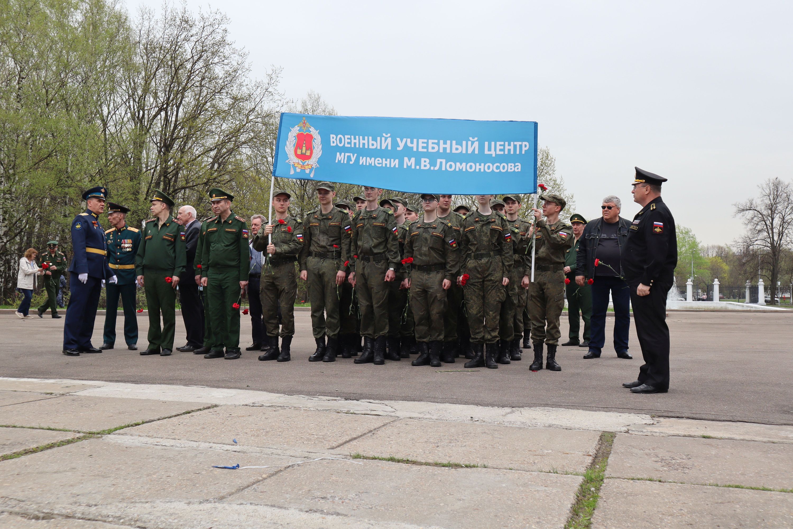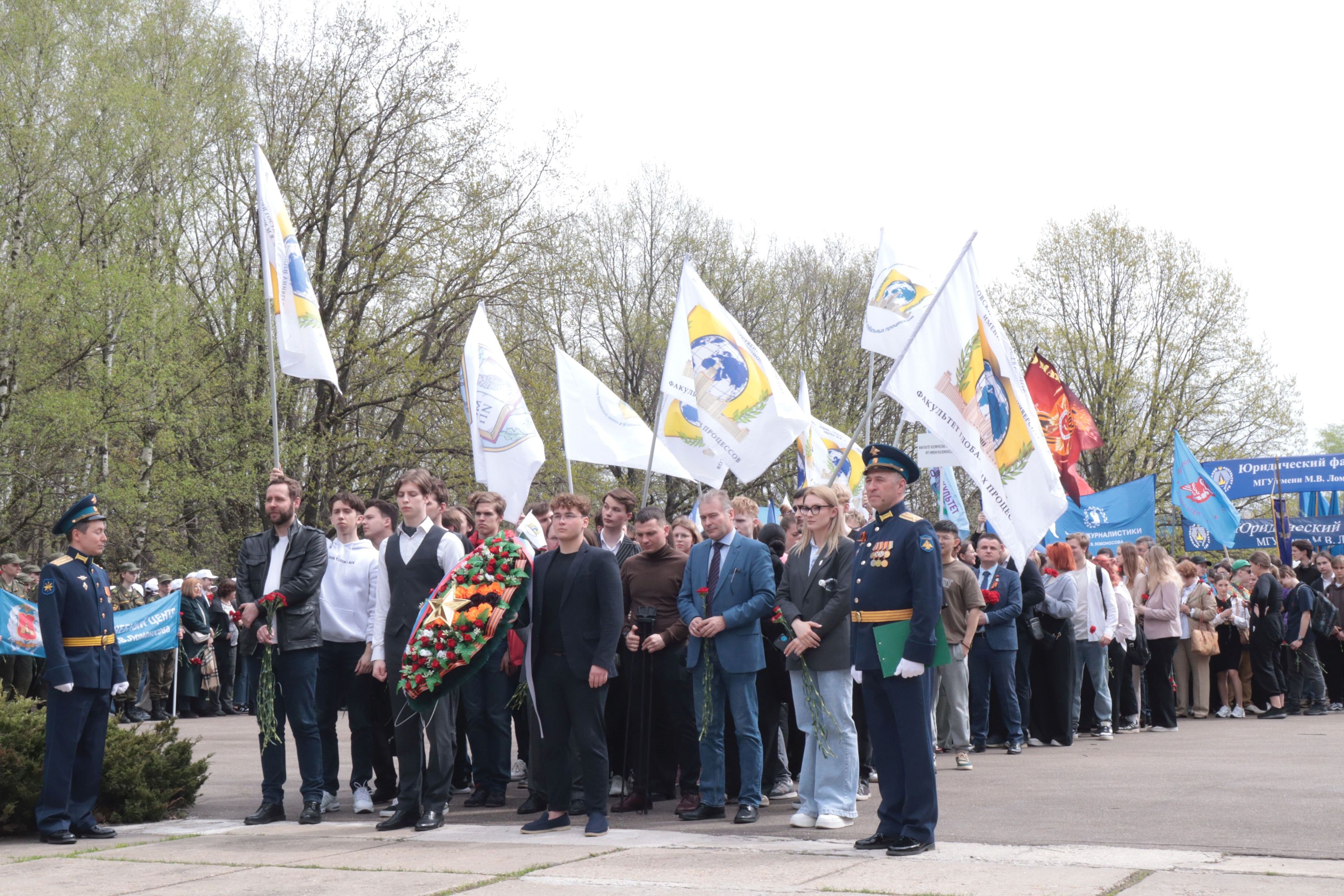 По окончании митинга состоялось возложение венков и цветов к монументу студентам и сотрудникам МГУ – героическим защитникам Родины в годы Великой Отечественной войны.